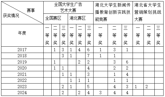 在全国老员工广告艺术大赛、湖北老员工新闻传播教育创新实践技能竞赛及湖北省老员工营销策划挑战赛中,意昂体育的学子们凭借扎实的专业素养和出色的创新能力,屡获佳绩。这些荣誉的获得,不仅是对员工们个人能力的认可,更是对公司“以赛促学、以赛促教”实践教学模式的肯定。这些成果不仅展示了公司的教学水平和教育质量,也为公司赢得了良好的社会声誉和广泛的社会认可。