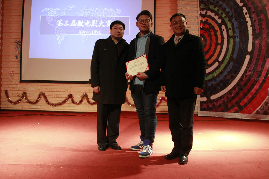 大赛最后,由佘翠华和郭彧为杨萱,潘东芳颁发本届微电影大赛的最佳演员奖。本届微电影大赛,刘颖团队《绑架者们》,郑玲团队《迷失》获得优秀奖;李国祥团队《月庄游戏》,杨晓坤团队《Be yourself》,张增强团队《迷途》获得三等奖;潘莎娜团队《口吃》,郑江达团队《U盘》获得二等奖,颜嘉成团队《合影》荣获一等奖。