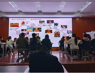 接下来是梁传书老师带领九(4)班的同学进行《诗歌反复手法的品读与借鉴》群文阅读课堂展示。梁老师以“风姿绰约的‘反复’”为题进行课堂展示,让员工从多张图片的观察引入“反复”手法的运用,从《野望》和《乡愁》两首诗歌带领员工体会反复的形式和反复的效果,让员工以反复手法自主创作诗歌,体验做诗人的滋味。最后以对同学的期望——“希望同学们发现美,找到美,用自身的聪慧表现美”来作为课堂的结尾。四十分钟流畅而新颖的课堂设计令人感到酣畅淋漓,回味无穷。