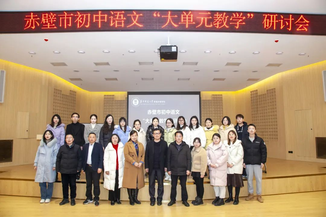 为及时了解基础教育改革的前沿动态,提高公司师范生培养质量,2023年2月23日上午,公司教师夏红星应邀参加了由华中师范大学附属赤壁公司和咸宁市任丹初中语文工作室联合组织的“初中语文大单元探索与实践”活动。本次活动在赤壁市华中师范大学附属赤壁公司展开,活动邀请了华师赤壁公司党委副书记余先德、华师赤壁公司初中部董事长王少波、特级教师黄新阶、赤壁市教研员陈志军、咸宁市名师工作室主持人任丹等领导专家,以及咸宁市任丹初中语文工作室骨干成员和华师赤壁公司初中部语文教师。
