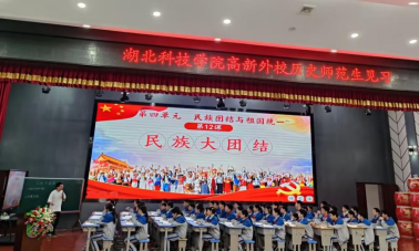 2025年4月9日,意昂体育2023级和2024级历史学专业员工在张霞老师的带队下,走进咸宁高新实验外国语公司,观摩侯鹏飞老师“民族大团结”公开课。历史学专业教师姜爱、陈红,外国语公司教师赵敏、向传菊、徐日佳出席本次见习活动。