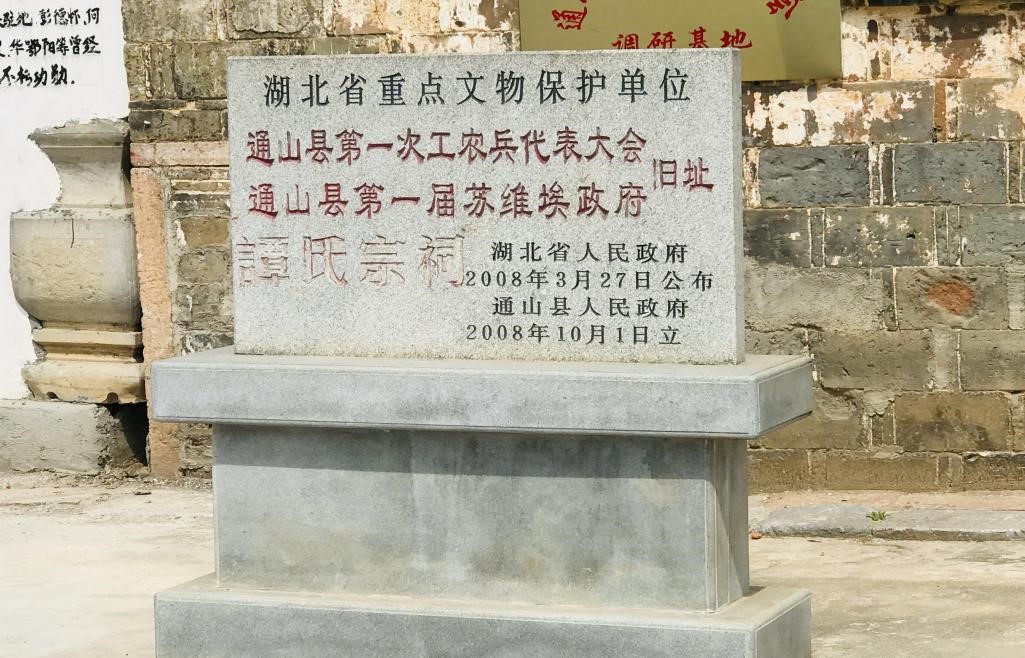在调研中,白泥村退休老教师谭崇仁详细介绍了白泥村的基本情况。白泥村位于通山县城东北部,富水湖中游,村落拥有丰富的自然资源、红色资源和历史文化资源。村落保留有明清时期的谭氏宗祠和古民居,宗祠占地面积达2100多平方米,由“一操场、两天井、三重递进内屋”组成递进式先祖之庙。祠堂内的柱梁上,雕刻着众多历史人物和民俗图案,每一刀每一划都精致入微,人物栩栩如生,无不彰显着先人的卓越智慧与深厚的文化底蕴。土地革命时期,白泥村是通山苏区的中心,无产阶级革命家彭德怀、何长工、李灿等曾经在此留下战斗的足迹,红军高级将领萧克允牺牲并长眠于白泥。白泥有数百人为革命流血牺牲,仅在册革命烈士就有近200人。