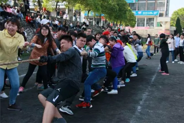 拔河比赛精彩非凡,无论是场上还是场下,气氛都异常紧张。富有节奏的呐喊声、鼓气声,充斥在运动场上空,久久回荡。在胜负难分的时刻,大家毫不退却,咬紧牙关,坚持到底。(≖ᴗ≖)