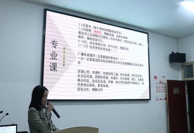 本次考研经验交流会持续两个小时,不仅给即将考研的同学提供了宝贵经验,也给有意向考研的同学指明了方向,让同学们对考研有一个更具体、清晰的认识。相信同学们在今后的考研道路上,一定能披荆斩棘、乘风破浪,走向成功。(审稿 佘翠华)