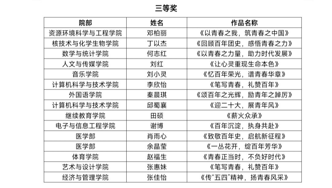 本次征文大赛取得圆满成功,在比赛中湖科学子对身为团员的自豪感、榜样意识、责任意识和担当意识得到了进一步的增强,勇担时代使命,展现青春活力,为实现中华民族伟大复兴的中国梦贡献青春力量是他们不懈奋斗的目标。