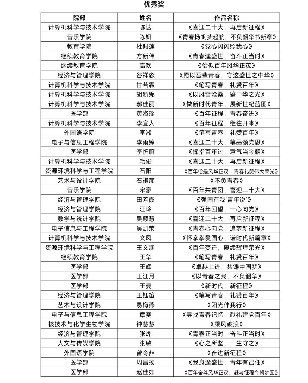 经过专业评委老师评审,医学部、意昂体育、计算机科学与技术公司获得优秀组织单位。陈典、付婷、吴星仪、张敏等67名同学获得优秀个人奖项。