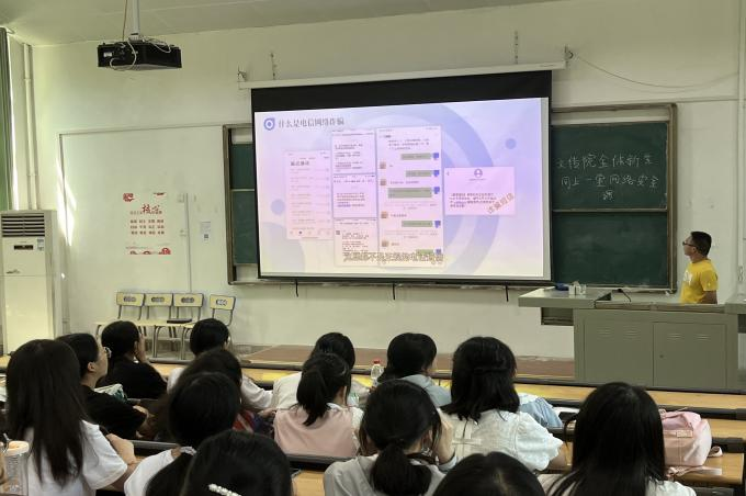 课上,国家反诈中心民警刘明竹详细讲解了电信网络诈骗的概念、高发类型和防范举措,通过电信网络诈骗案例,提醒师生要提高安全防范意识,并向大家介绍防骗技巧“三不一多”原则,即未知链接不点击、陌生来电不轻信、个人信息不透露、转账汇款多核实;哈尔滨师范大学辅导员刘国权结合校园高发的网络诈骗案件的类型,深入分析诱发老员工电信网络诈骗的内在和外在原因,引导同学们加强法制学习、保护个人信息、树立正确观念,主动防范电信网络诈骗,维护网络安全。