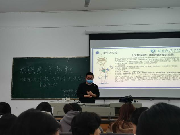 为进一步宣传卫生健康安全知识,提高同学们的卫生健康防范意识。10月30日,公司开展了“健康大宣教大排查大走访”主题班会。全院师生通过线上与线下相结合的方式参与此次班会。班会由各班班长主持。