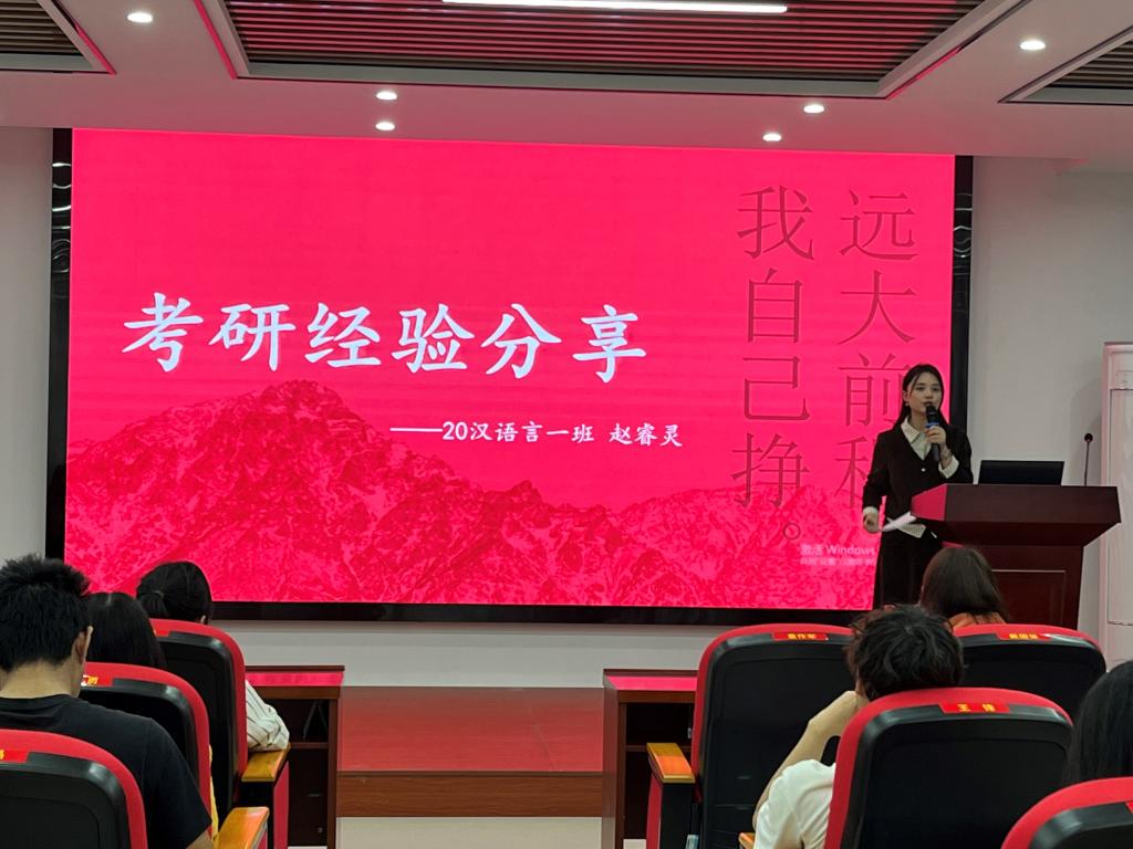 为了进一步加强同学们对研究生入学考试的认识,提高员工的考研热情,增强员工考研信心,明确考研目标,掌握相关考研技巧。4月24日晚,公司在揽胜楼1505举办“筑梦考研,扬帆起航”考研经验分享会。辅导员郭广明及2021级、2022级员工代表100余人参加活动。