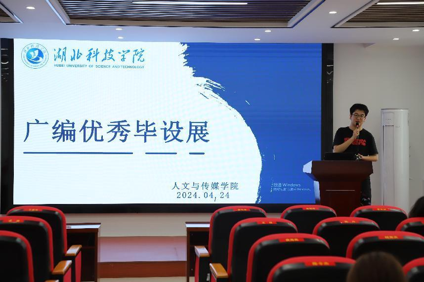 展映结束,谭经理对本次活动进行总结发言。他对本次展映的毕业作品给予了高度评价,同时也提出了殷切期望,鼓励广播电视编导专业的同学从日常生活、社会万象中感悟生活真谛,用专业视角与专业技能传播弘扬“向上、向善”的精神。