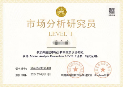 市场分析研究员证书