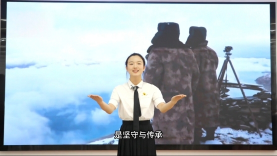 张紫涵与徐紫彤结合自身军事训练相关经历,发表了《爱我中华,强我国防》的演讲。她们通过描述自身经历,抒发亲身感悟,表达了对国防军事人员最崇高的敬意,抒发出作为中国人的志气与底气,展示了争当先锋、砥砺奋斗的自信与勇气。