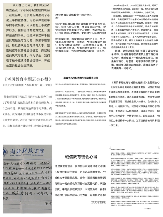 此次考风考纪教育主题班会的成功召开,在班级内营造了浓厚的诚信考试氛围,有效增强了同学们的自律意识和诚信观念。相信在全院师生的共同努力下,公司定能在期末考试中呈现出良好的考风考纪,为推动公司学风建设迈向新台阶奠定坚实基础。