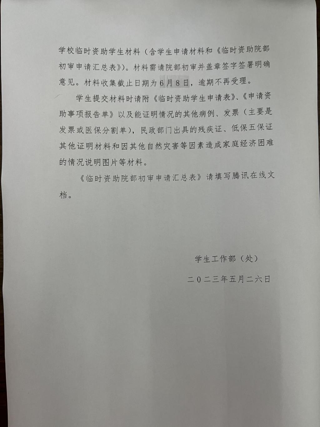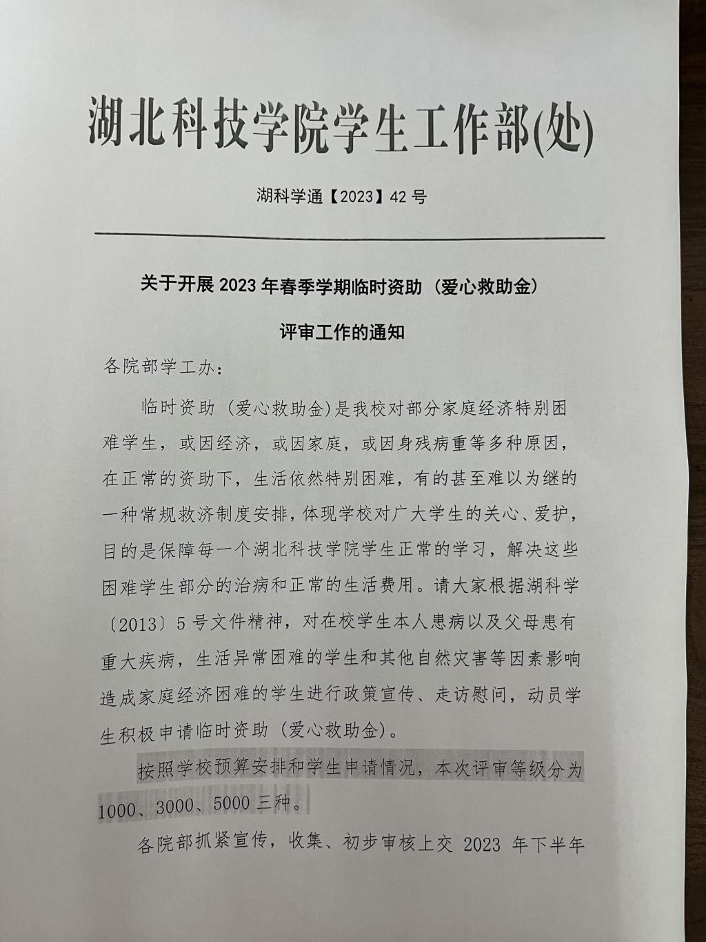 关于开展2023年春季学期临时资助( 爱心救助金)评审工作的通知