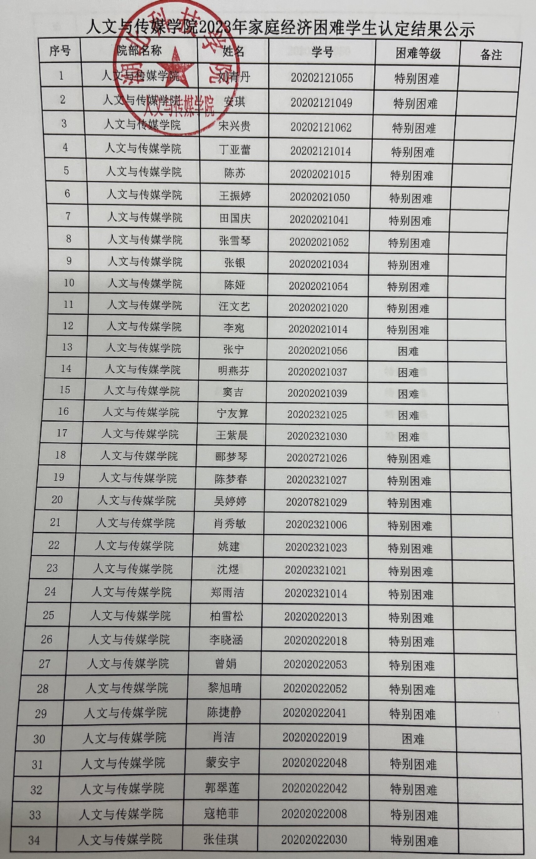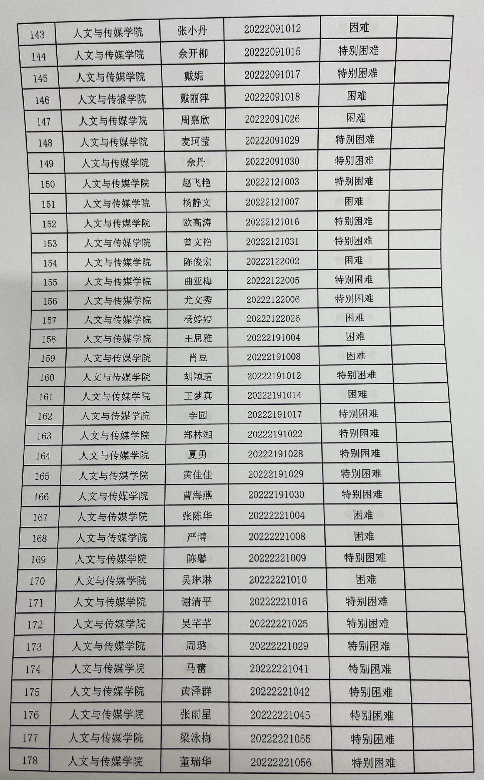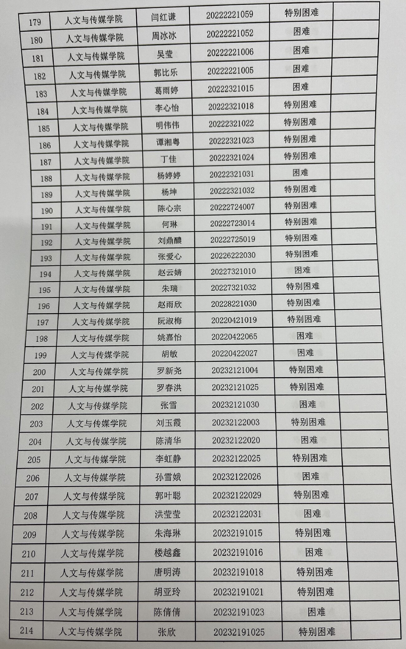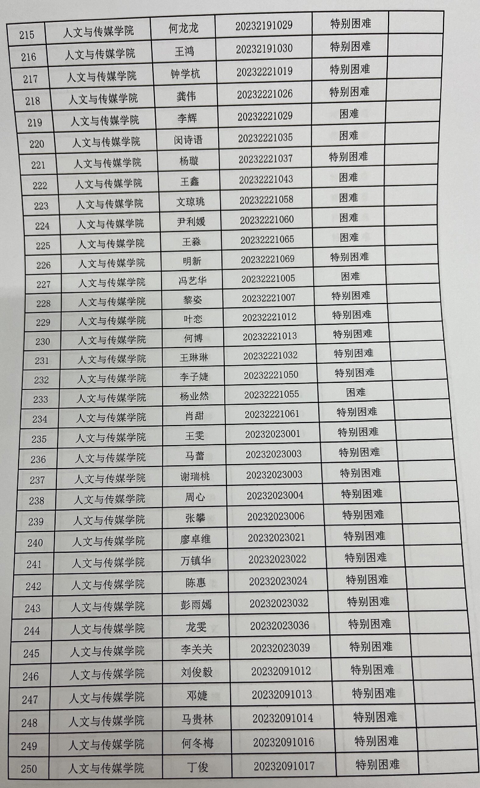 意昂体育2023年家庭经济困难员工认定名单及分班级汇总表公示