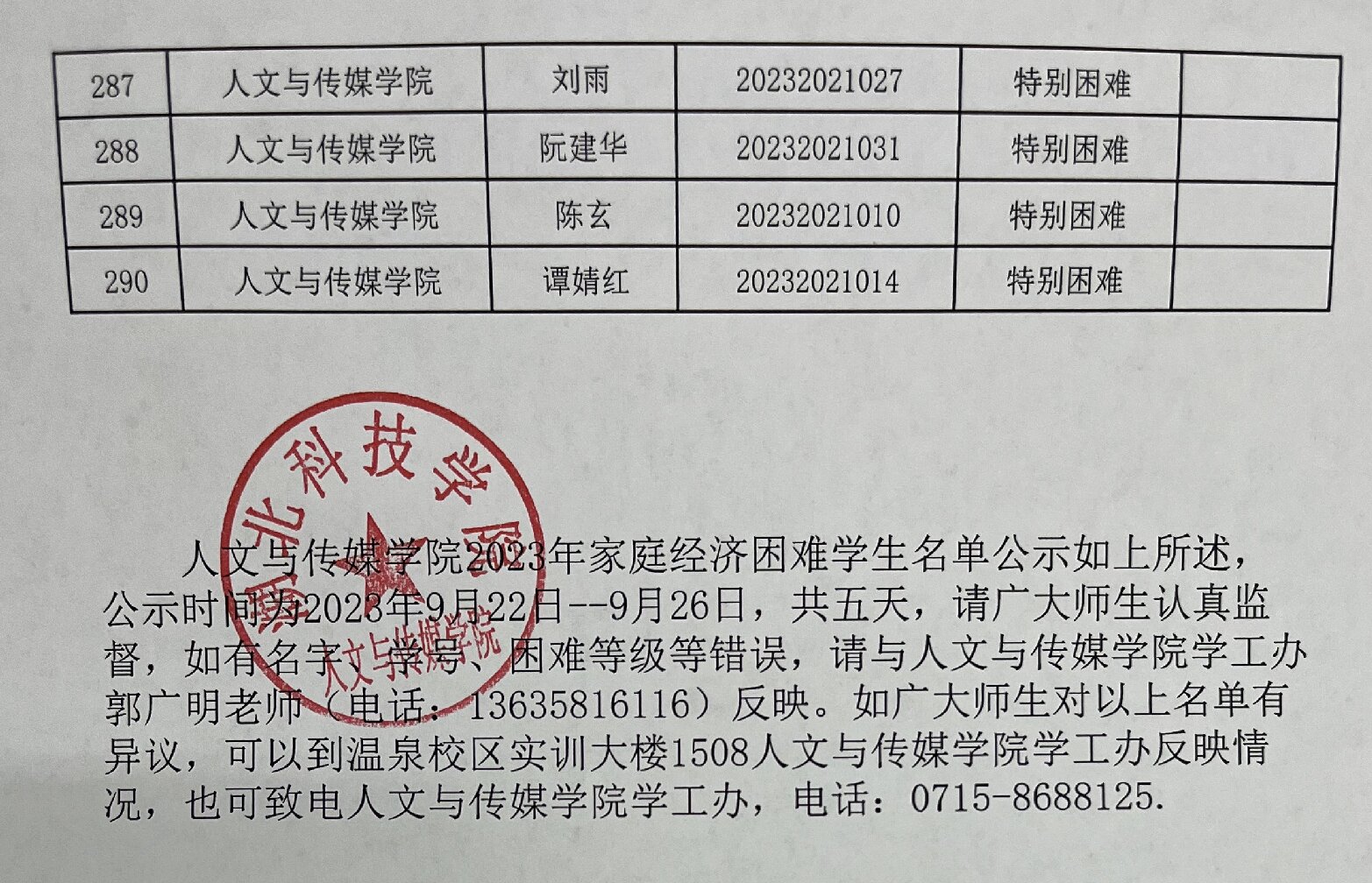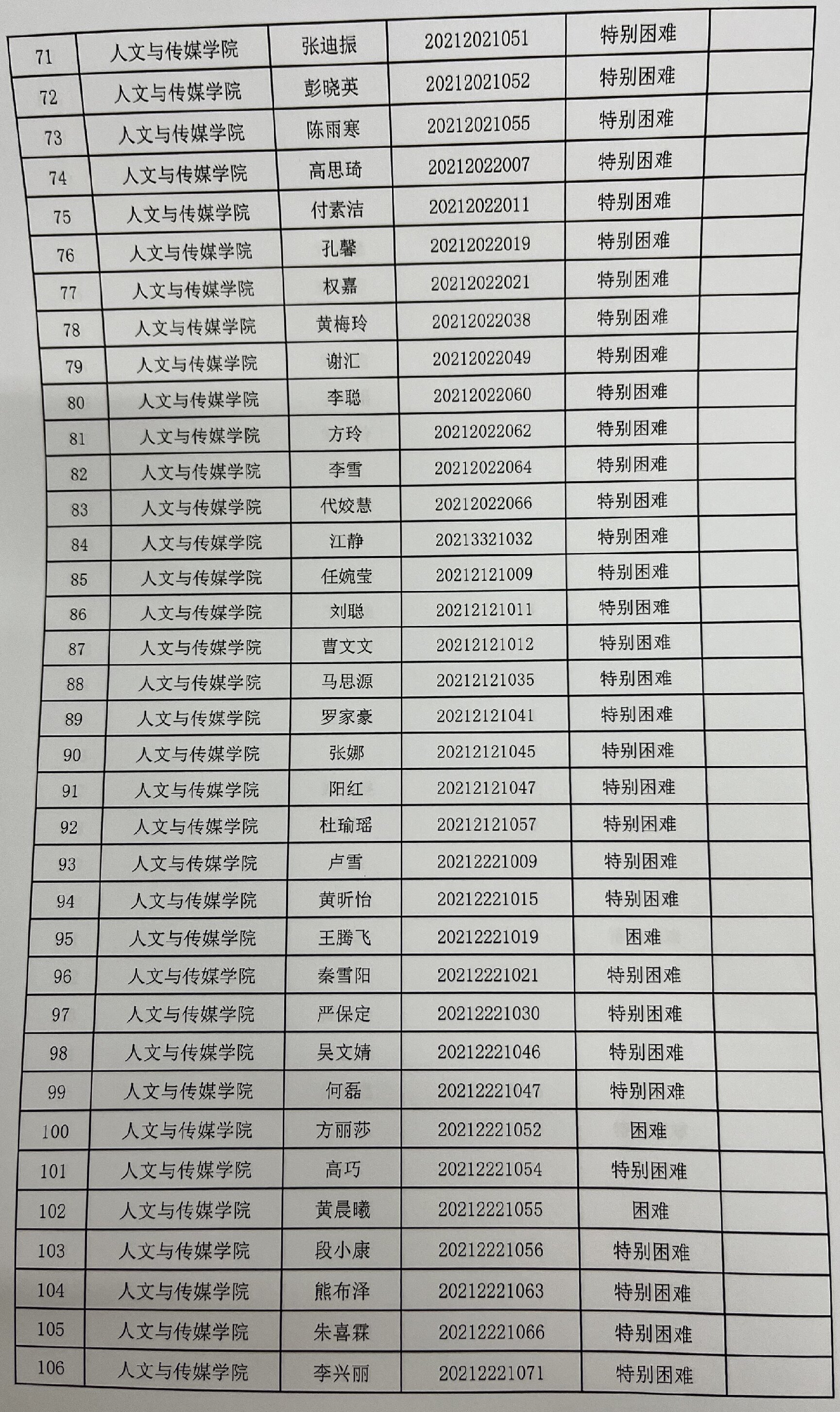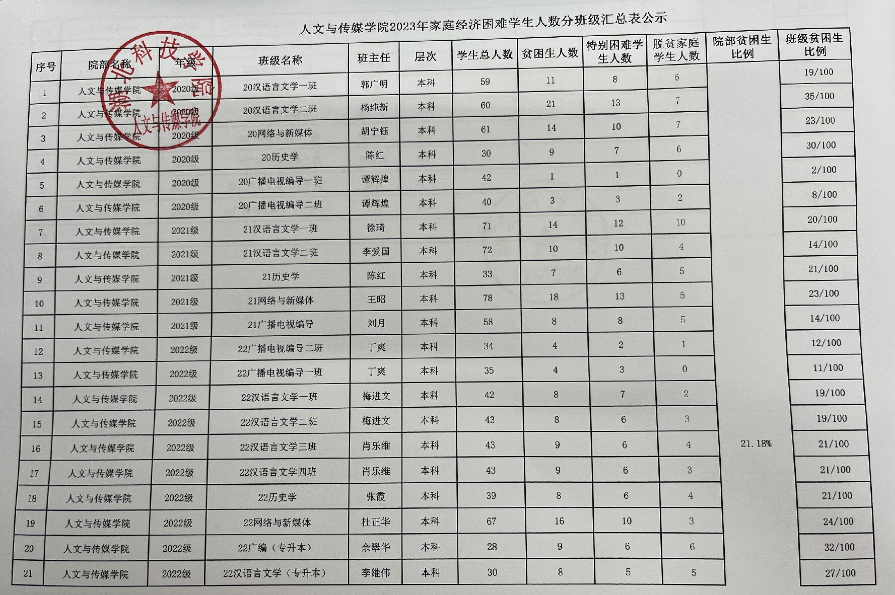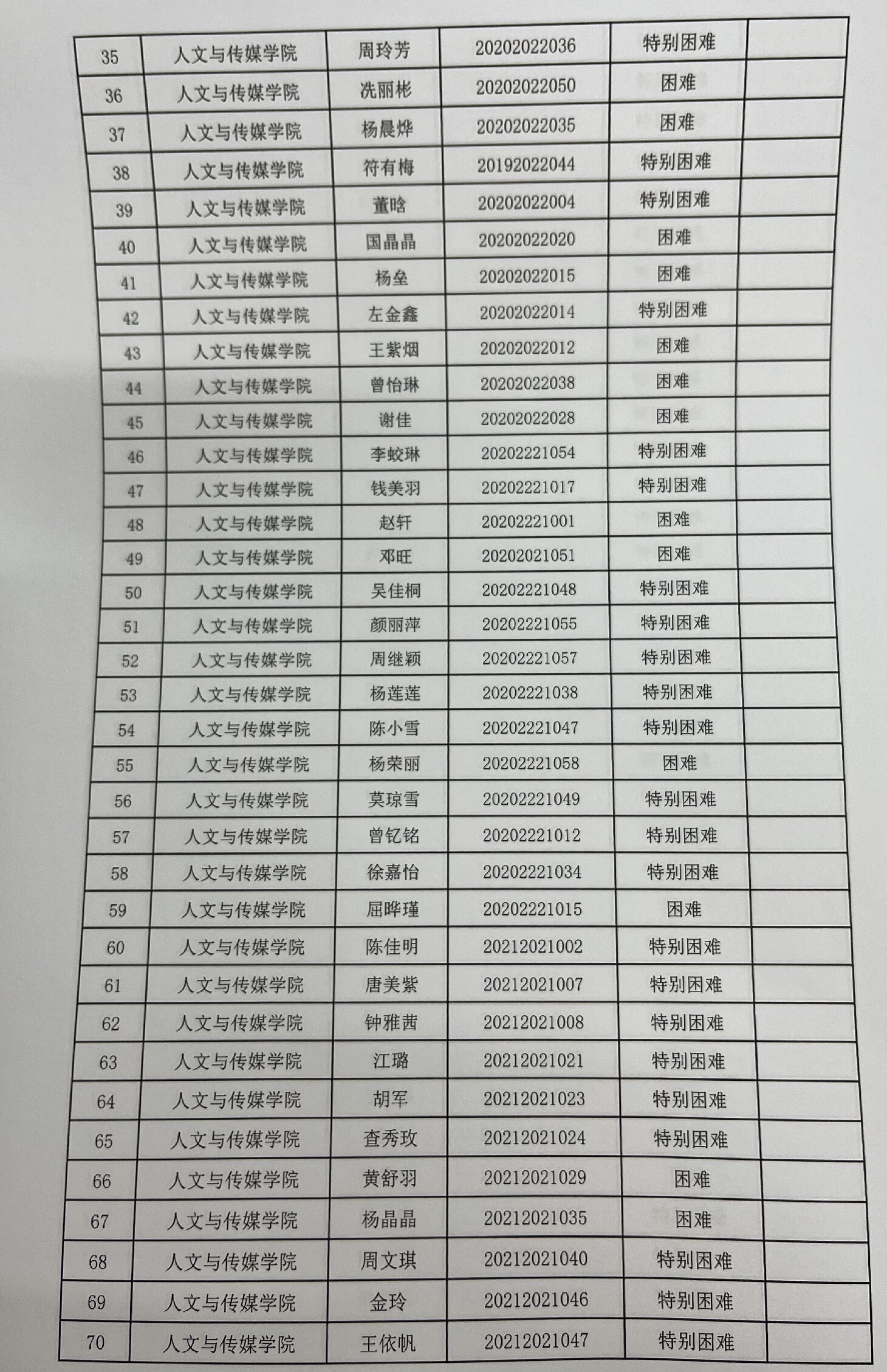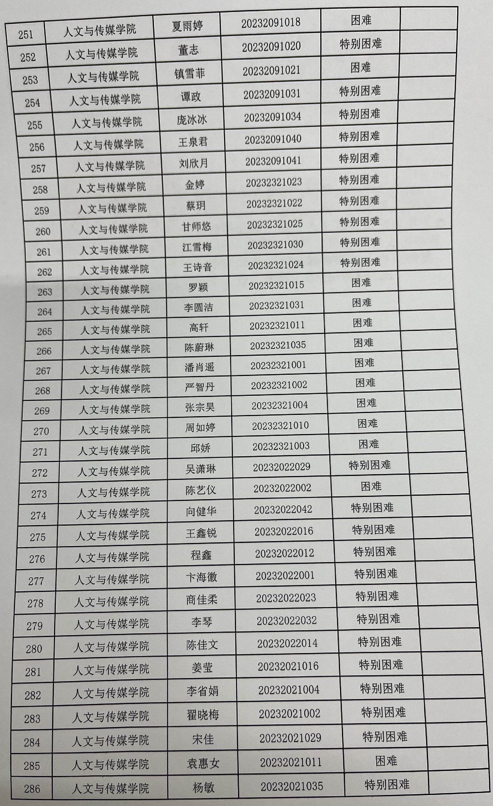 意昂体育2023年家庭经济困难员工认定名单及分班级汇总表公示