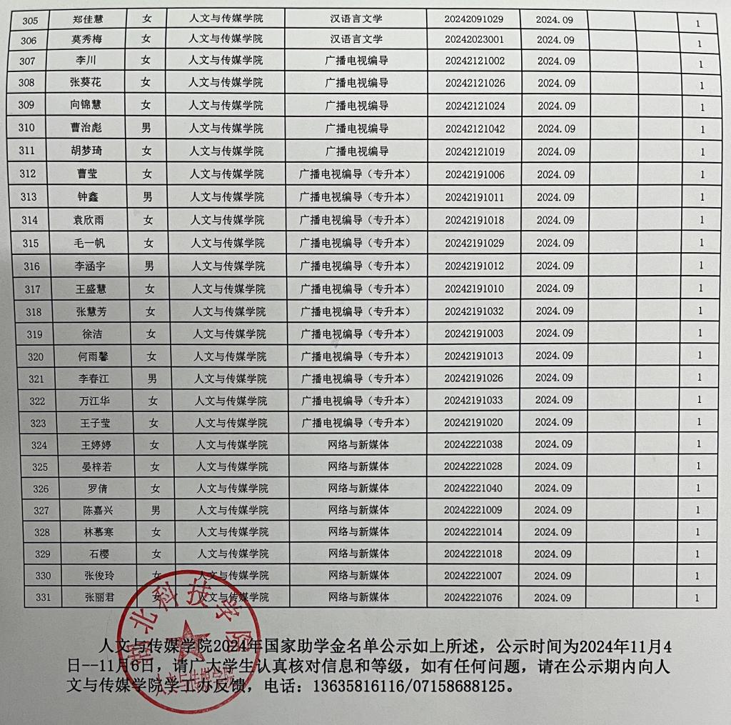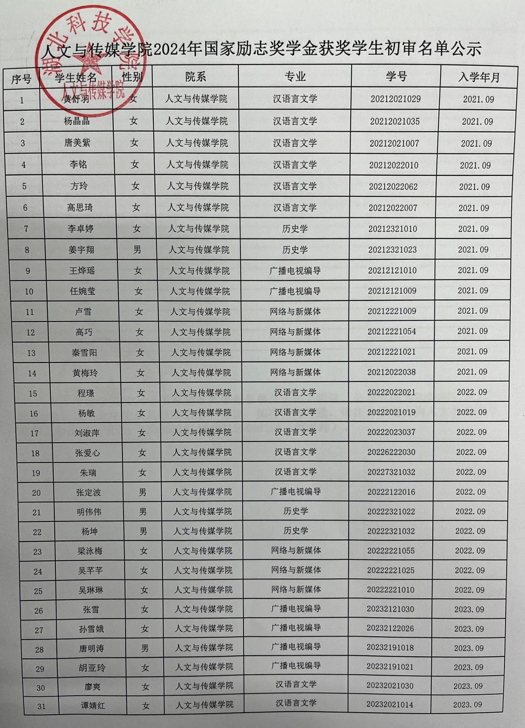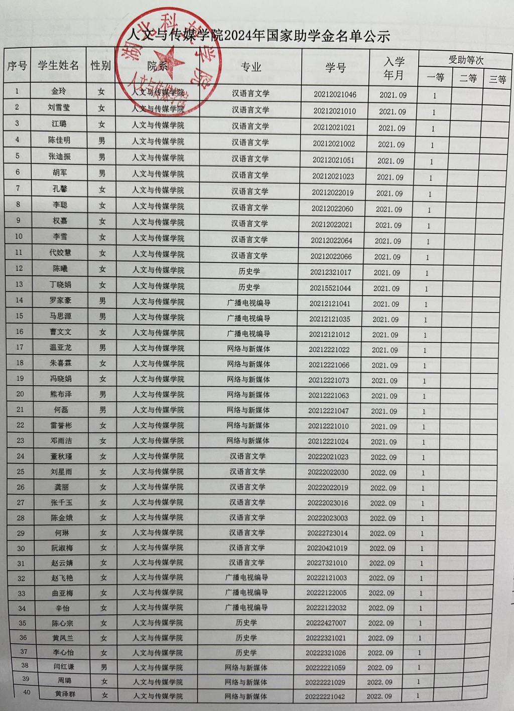 意昂体育2024年国家励志奖学金、国家助学金名单公示