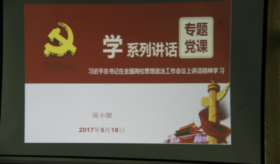 活动最后,支部书记周小丽讲党课,要求每位员工党员都要做政治合格党员,努力做社会主义事业的建设者和可靠的接班人。同时,针对五月的心理健康“寝室人际关系”活动,希望每位党员在寝室卫生和人际关系上做好表率,做寝室矛盾的“和事者”。至此,此次活动圆满结束。
