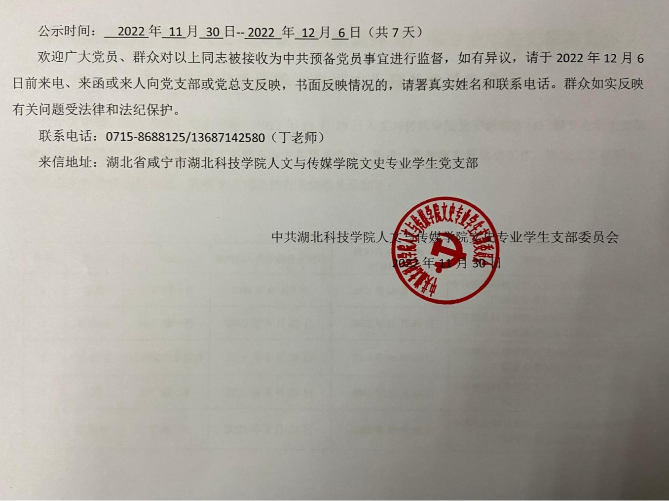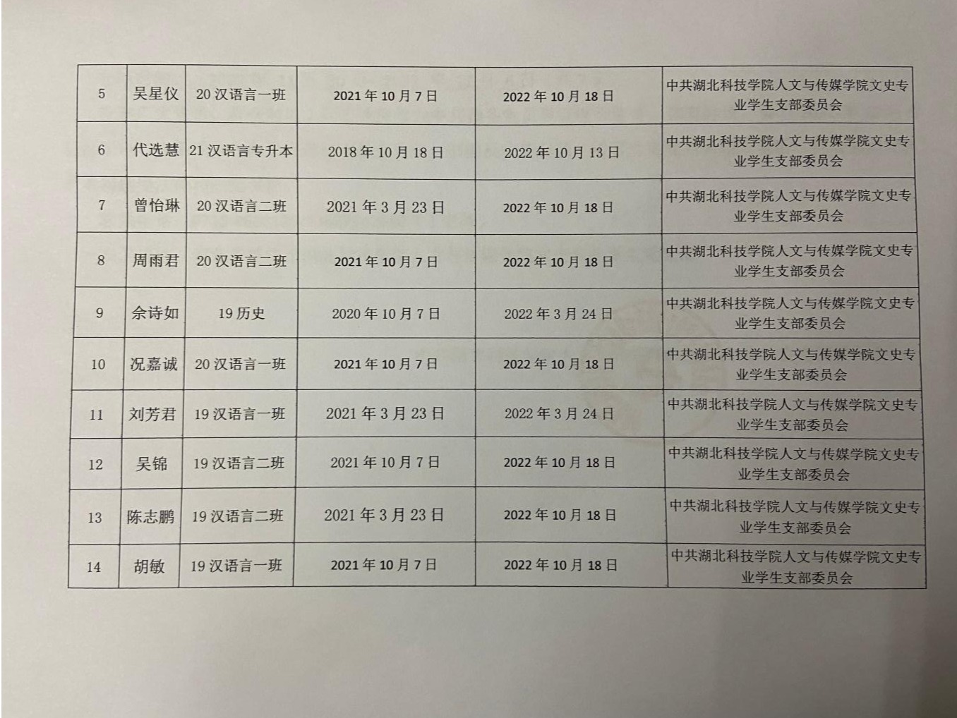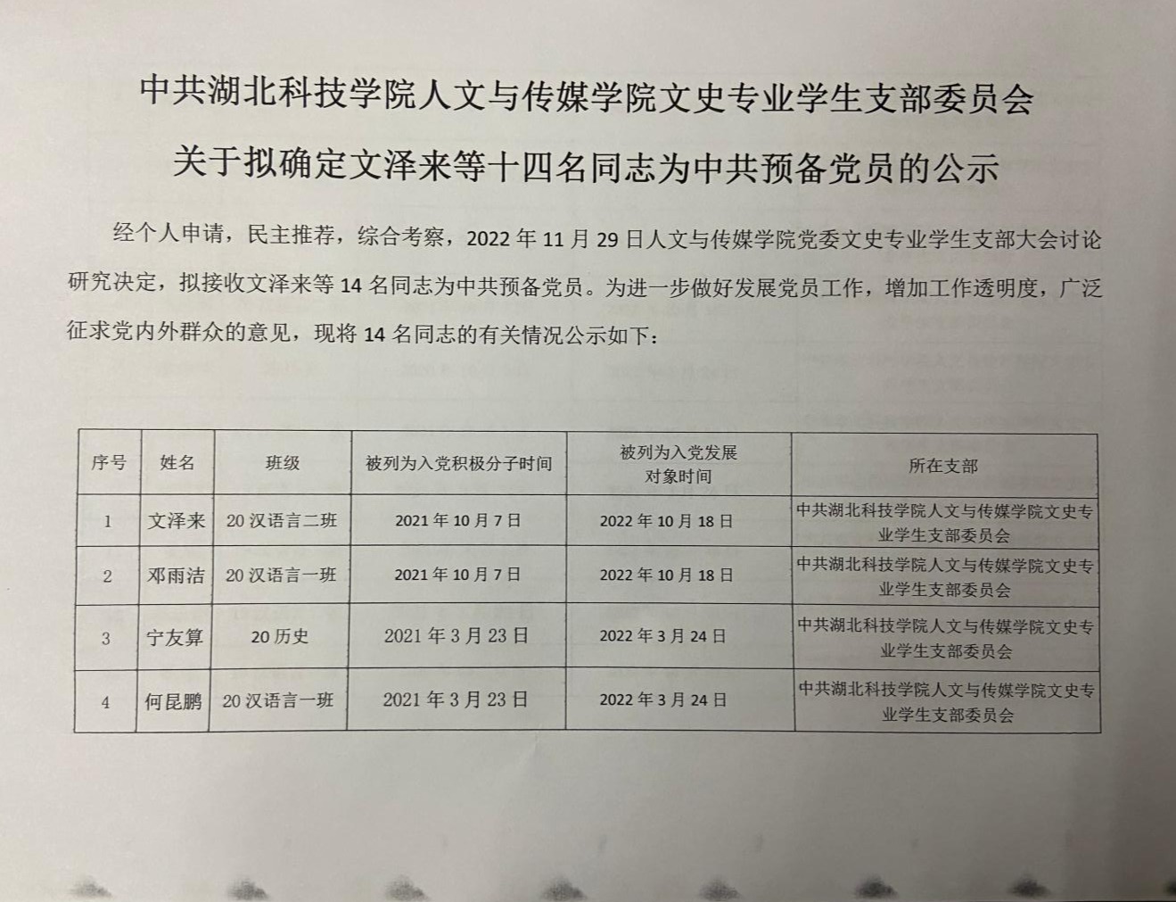 中共意昂体育文史专业员工支部委员会关于拟确定文泽来等十四名同志为中共预备党员的公示