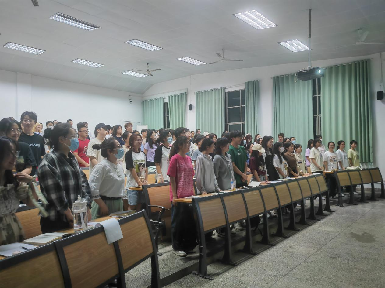 佘书记结合生活实例、热点话题,教育同学们树立踏实肯干的作风,奉献助人的习惯,发挥自身的先锋模范作用。宣讲过程中,师生间互动不断,一问一答间将生涩的理论知识消化理解;在一次次齐声朗读中,将伟大建党精神牢记于心;活动尾声,佘书记带领全体成员以一首慷慨激昂的《歌唱祖国》为本次党课画上圆满句号。本次党课为凝聚思想共识,强化党性修养,起到助力提升作用。