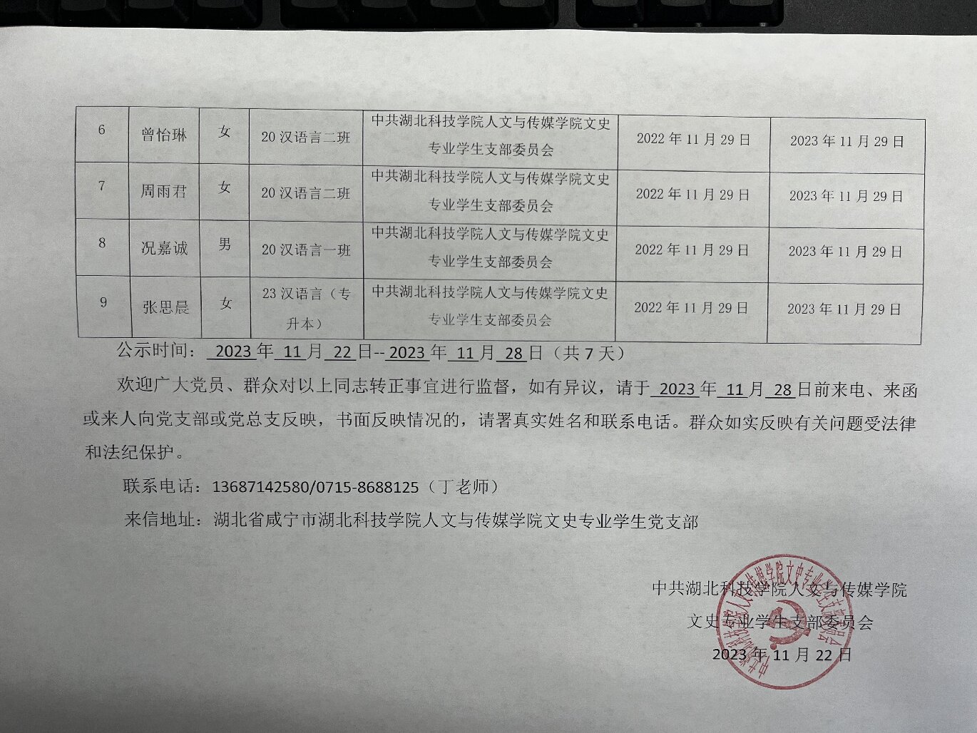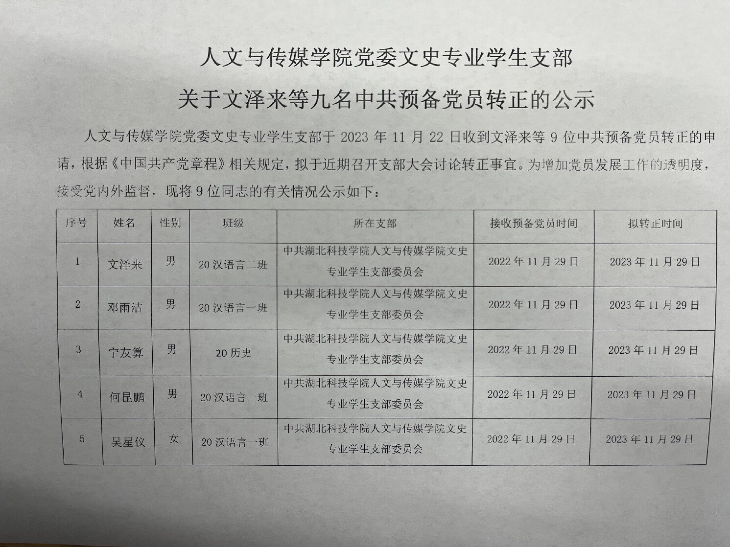 意昂体育党委文史专业员工支部关于文泽来等九名同志中共预备党员转正的公示