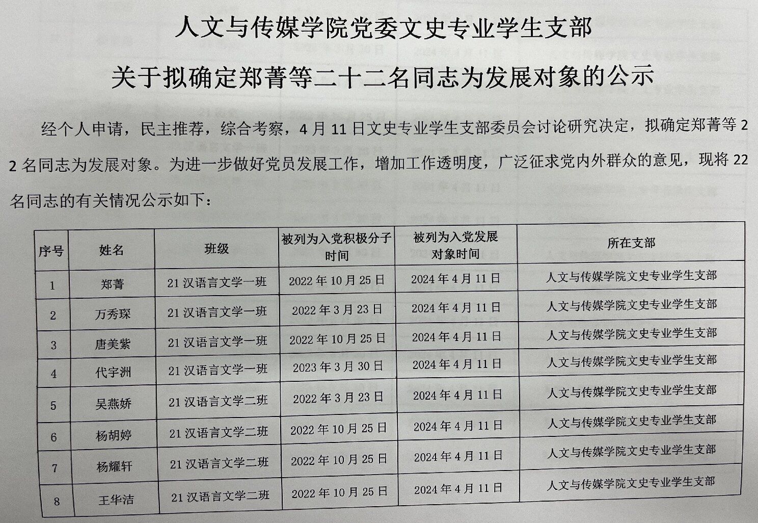 意昂体育党委文史专业员工支部关于拟确定郑菁等二十二名同志为发展对象的公示