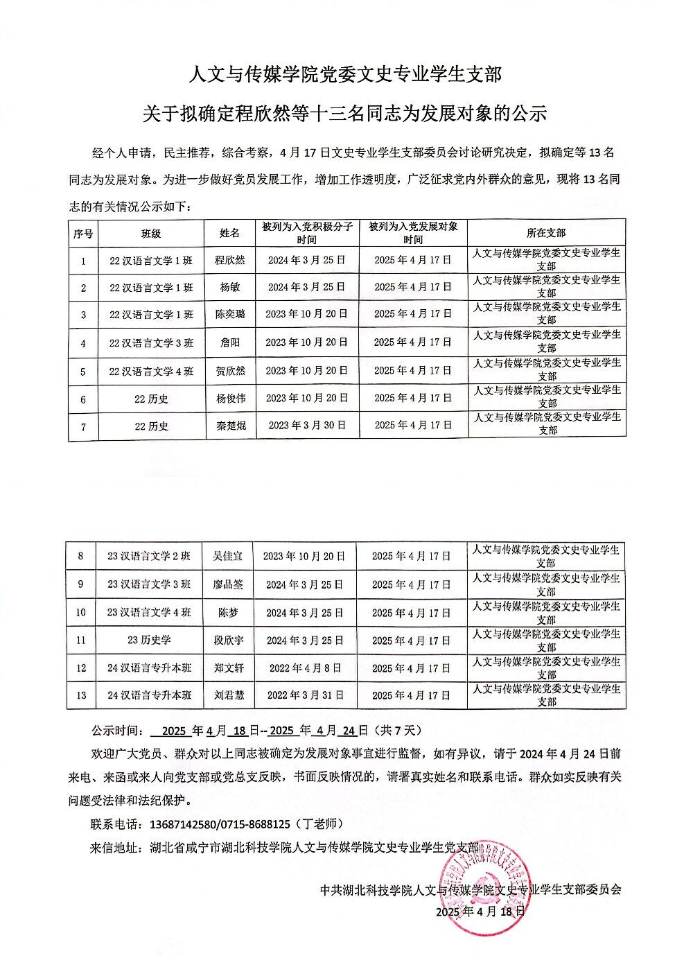 意昂体育党委文史专业员工支部关于拟确定程欣然等十三名同志为发展对象的公示