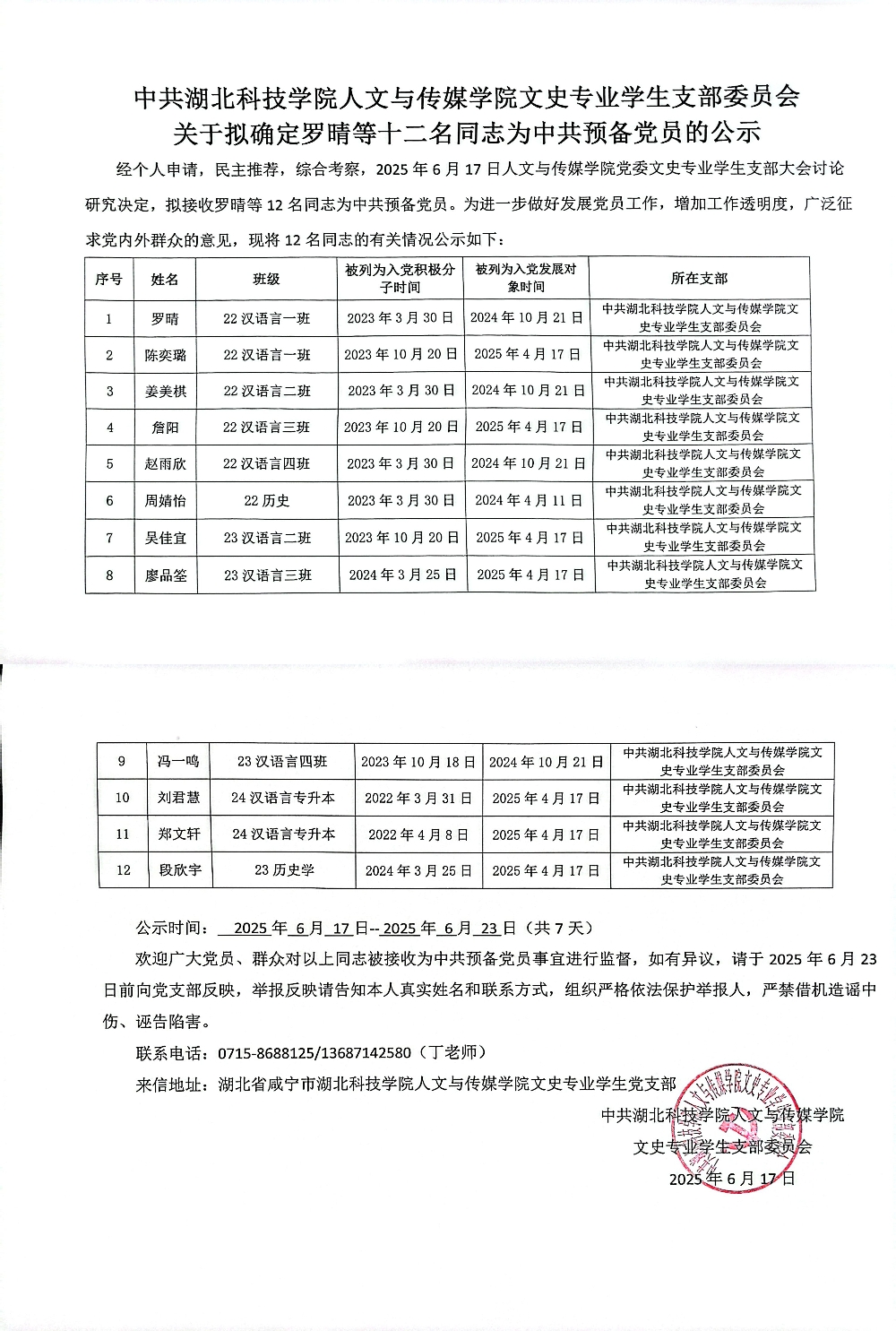 意昂体育党委文史专业员工支部关于拟确定罗晴等十二名同志为中共预备党员的公示