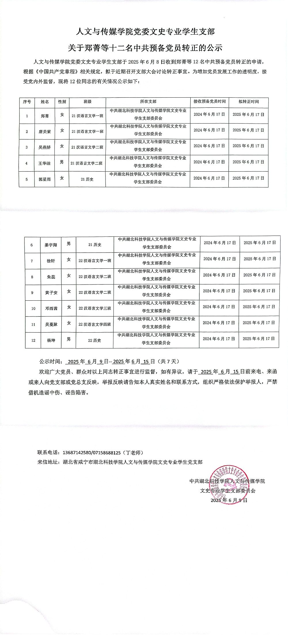 意昂体育党委文史专业员工支部关于郑菁等十二名中共预备党员转正的公示