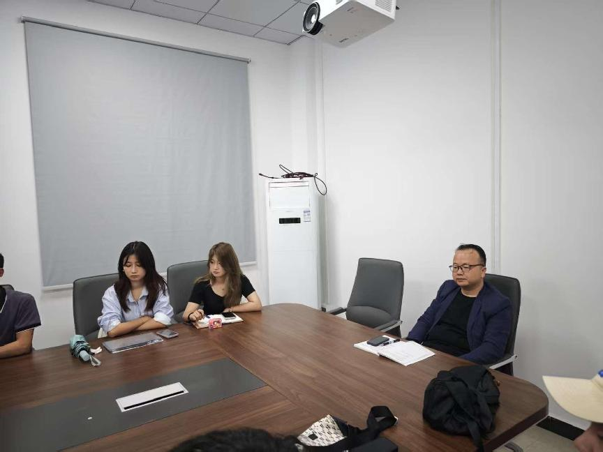 随后,同学们与拾米文化传媒有限公司负责人:体育公司的21级员工王龙霄进行交流。王龙霄热情接待了师生一行,并带领大家参观了公司的办公环境、创意工作室和项目展示区。在交流座谈会上,他分享了公司的发展历程、业务范围以及在短视频创作、品牌营销等领域的成功案例。同学们积极提问,就内容创作、市场需求、职业发展等问题与其公司成员展开了热烈讨论。公司的专业人士也结合自身经验,为同学们提供了宝贵的建议和指导。