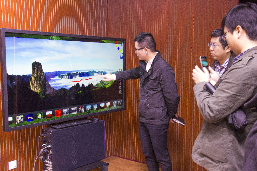 临近中午,公司广播电视编导专业教师在湖北民院广播电视编导系主任的带领下参观了武陵山民族文化与旅游产业发展湖北省协同创新中心,欣赏了该系师生创作的公司宣传片,观摩和体验了新闻播报的“点屏”操作系统。