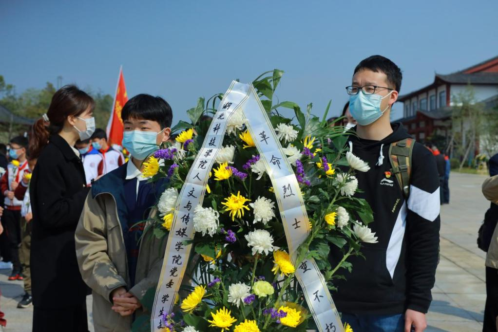 在烈士纪念碑前,党员代表向革命烈士敬献花篮,全体师生肃立默哀,表达对革命烈士的崇高敬意和深切悼念之情。支部书记郭广明同志带领全体成员重温入党誓词后开展纪念碑前微党课,员工党员代表周宇从鄂南革命历史回顾、批驳历史虚无主义、传承革命红色基因三个方面向同学们讲解鄂南的红色历史,鼓励同志们认真阅读党史、增强理想信念,将历史经验转化为自身行动,争做有理想、有本领、有担当的新时代青年人。