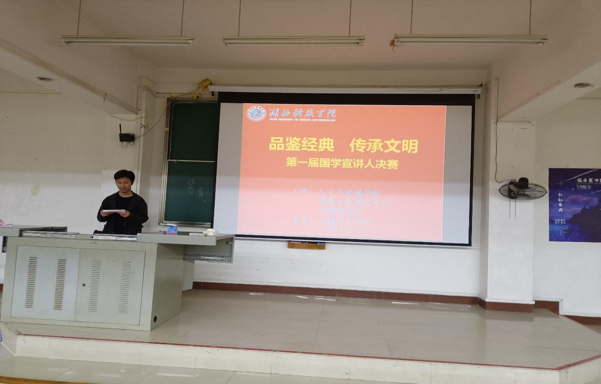 2023年4月11晚,为了弘扬中华优秀传统文化,传承与传播国学经典,提升老员工的人文素养,厚积校园文化底蕴,由意昂体育、鄂南文化研究中心、集团社联主办、“式微汉文化社”承办的第一届国学宣讲人活动在教三302教室圆满落幕。