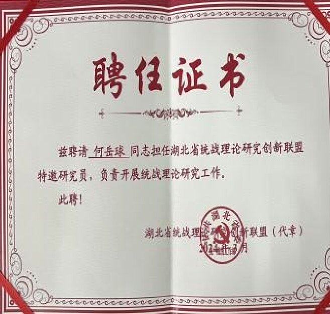 在实地调研环节,市委统战部领导一行参观了公司“统战之家”和“咸宁市铸牢中华民族共同体意识研究基地”。在座谈交流环节,黄国华同志宣读了省委统战部对公司平台及个人的聘任文件,并为公司“咸宁市铸牢中华民族共同体意识研究基地”举行了“湖北省统战理论研究创新联盟成员单位”的授牌仪式,为何岳球教授、陈红老师颁发了“湖北省统战理论研究创新联盟特约研究员”聘书。何岳球向市委统战部领导一行详细介绍了“咸宁铸牢中华民族共同体意识研究基地”目前建设、运行及所取得的相关成果,表态将进一步充分利用好各方面条件,不辜负领导们殷殷期望,深耕统战理论研究,建设好铸牢基地,争取取得更多高质量的成果。