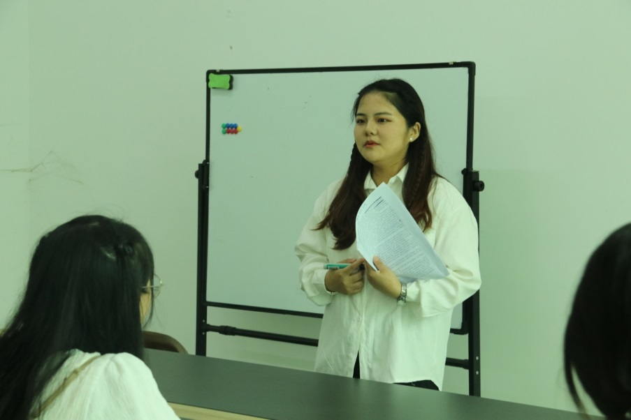 首先进行的是“教案设计、模拟讲课”组,同时简笔画、三笔字小组现场准备参赛作品,简笔画小组围绕“深山藏古寺”这一主题进行创作。讲课组1号选手林嘉媛同学讲的是《周亚夫军细柳》,通过军营将士以及周亚夫的行为和语言来表现周亚夫的个人魅力,带领同学们领略了周亚夫大的将军风范。2号选手胡世龙同学选题是鲁迅先生的《从百草园到三味书屋》,以文章段落层次梳理为授课目标。她从乐景、乐闻、乐事三个方面展示称之为“乐园”的百草园。3号向丽娜同学从分析文题入手,讲解了《曹刿论战》中的“三问三答”。4号选手谭双双从内外两方面对“春”进行了特点的分析,着重讲解“春草图”的语言文字分析。课上她带领同学们赏析品读文章语言,气氛活跃。5号选手王开梅带领大家领略了济南冬天的美景。6号选手陈玲以设疑方式导入讲解《桃花源记》,带领同学们探究渔人发现桃花源的过程,教学过程生动有趣。7号选手朱婷通过分析文中细节描写,帮助员工理解杨绛先生笔下“老王”的形象。8号选手刘红联系员工生活实际,进行了“毕业赠言”主题写作教学。从品味古诗词中的离别入手,出示并分析三条赠言,引导员工确定赠言的“读者、目的、话题”,最后让同学们应用所学知识拟写赠言。